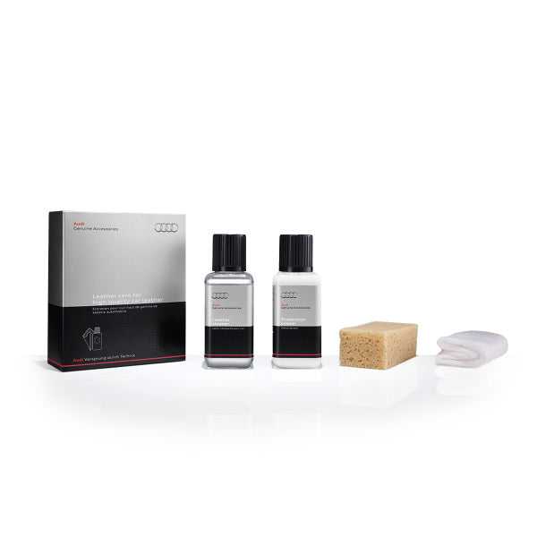 Este conjunto incluye un producto de limpieza especializado para cuero, una crema protectora, una esponja de aplicación y un paño de vellón, proporcionando así un kit integral para el cuidado y mantenimiento óptimo de superficies de cuero.